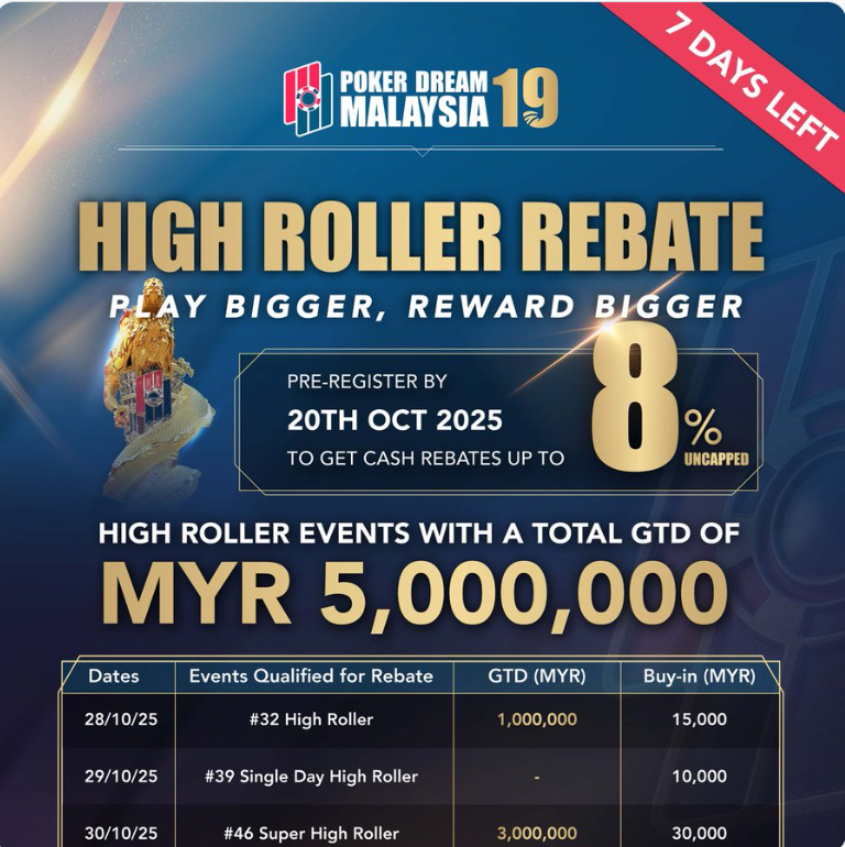 Malaysia Open 不仅是系列赛的开场重头戏,更将成为 Poker Dream 19 马来西亚站最具人气与参与度的赛事之一。