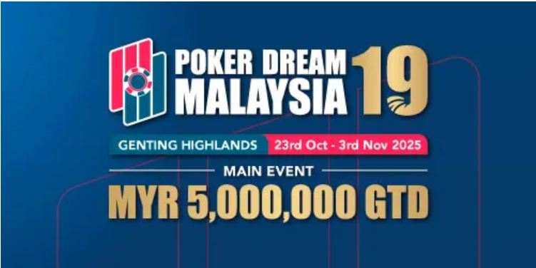 备受瞩目的 Poker Dream 19 Malaysia 将于 2025年10月23日至11月3日 在 马来西亚云顶高原(Genting Highlands) 盛大举行。本次系列赛汇集多项重磅赛事,包括高额保底锦标赛、神秘赏金赛(Mystery Bounties)、混合游戏(Mixed Games),以及多项限时报名专属优惠